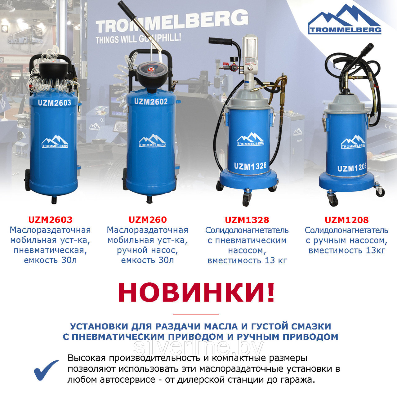 Мобильная маслораздаточная установка на шасси с ручным насосом, маслораздаточным пистолетом, манометром, 1.3-м шлангом и большой воронкой.