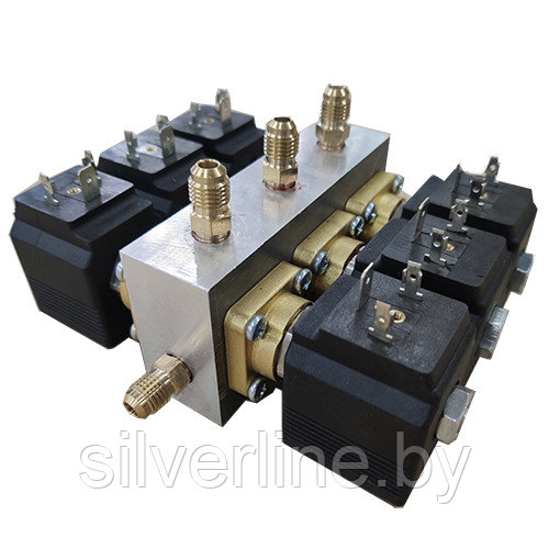 | Цельный коллектор с двумя электромагнитными клапанами на каждый контур позволяет на 100% контролировать каждую функцию станции. |