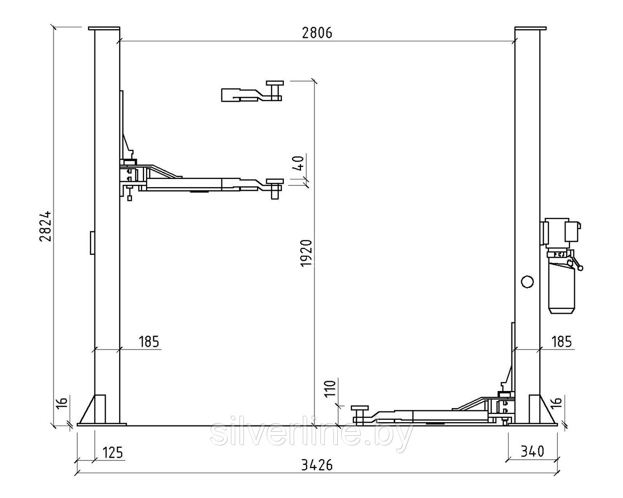 | Расстояние между колонами подъемника, мм. | 2806 |