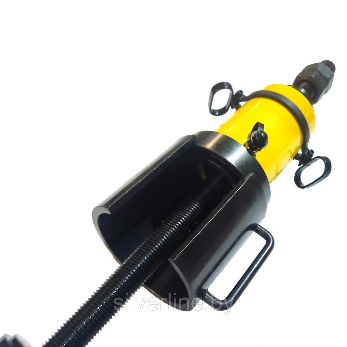 Выпрессовщик ODA-V1339 предназначен для снятия и установки втулок рукояти, стрелы и прочих узлов тяжелой строительной техники, лесозаготовительных и горных машин и прочих транспортных средств, а также различного грузоподъёмного оборудования. Позволяет производить работы по замене втулок и стаканов без применения ударного инструмента и применения сварки для наплавки внутреннего утягивающего шва.