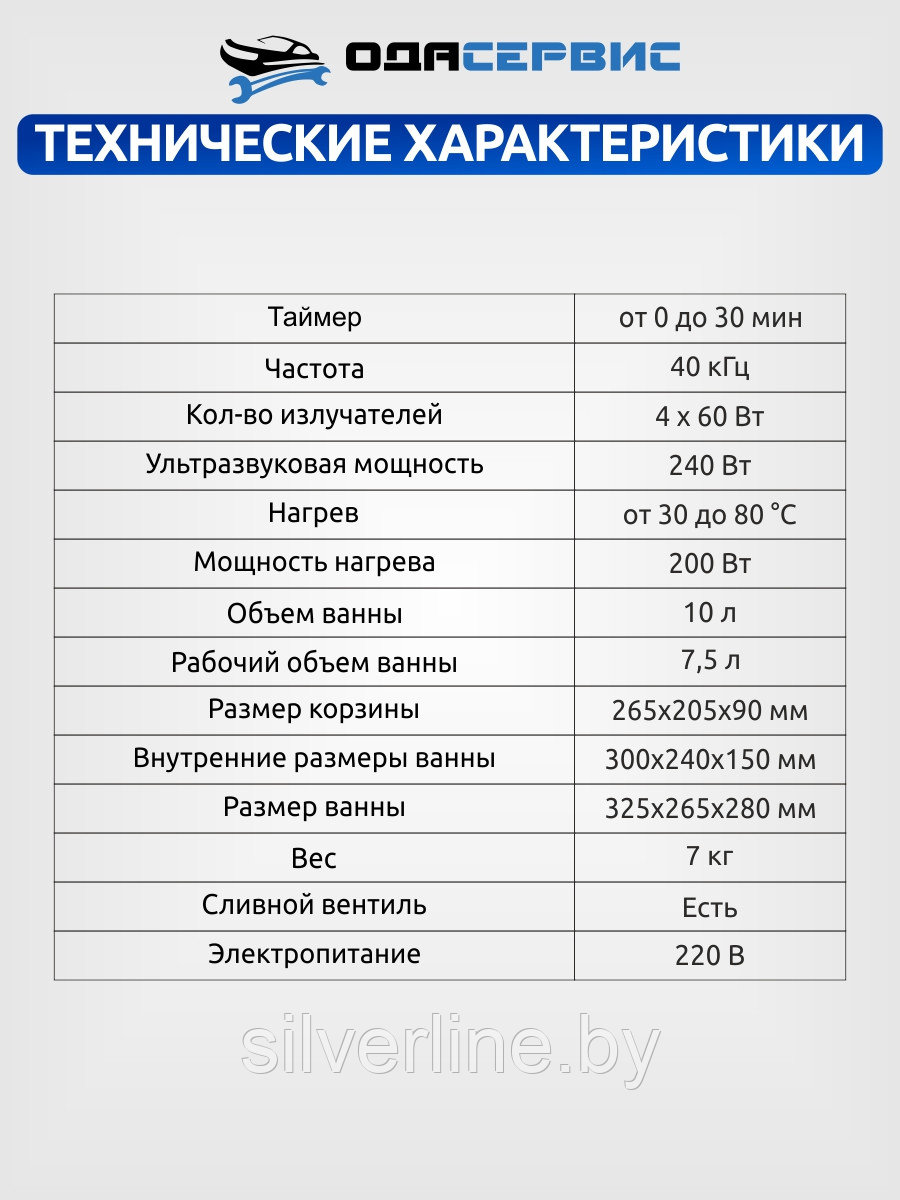Сравнительные характеристики ультразвуковых ванн Ода Сервис объемом 10 литров