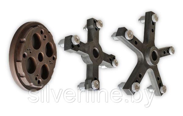 Комплект адаптеров для центрирования колес грузового транспорта за крепежные отверстия в диске. Включает 4- и 5-лучевые "звездочки", фланец и крепежные штифты.